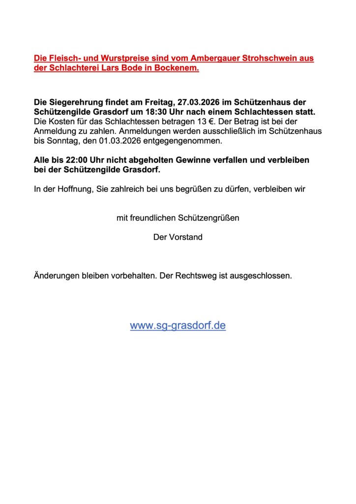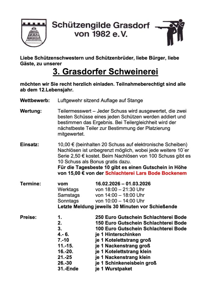 Wettkämpfe Hier findest du aktuelle Ausschreibungen für Wettkämpfe in unserer Umgebung 3. Grasdorfer Schweinerei 3-Grasdorfer-SchweinereiHerunterladen